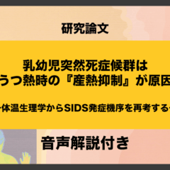 2005年に『環境温度が赤ちゃんの体温調節機構に及ぼす影響について -赤ちゃんを発達障害・SIDSから守るために-』と題し、臨床体温 23巻 1号で発表した論文も公開していますので、こちらもぜひご覧ください。
