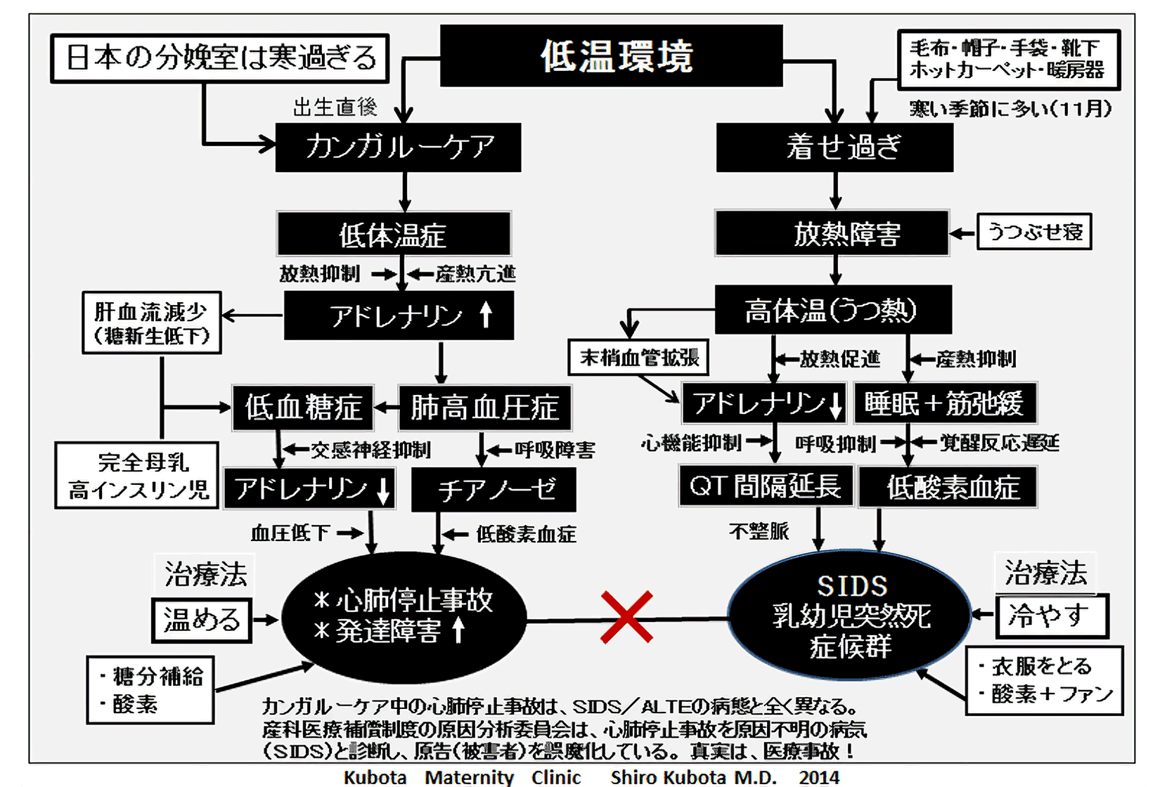 さらに、カンガルーケア中には、低体温症に起因すると考えられる心肺停止事故とその後の脳性麻痺の症例が多発しています。